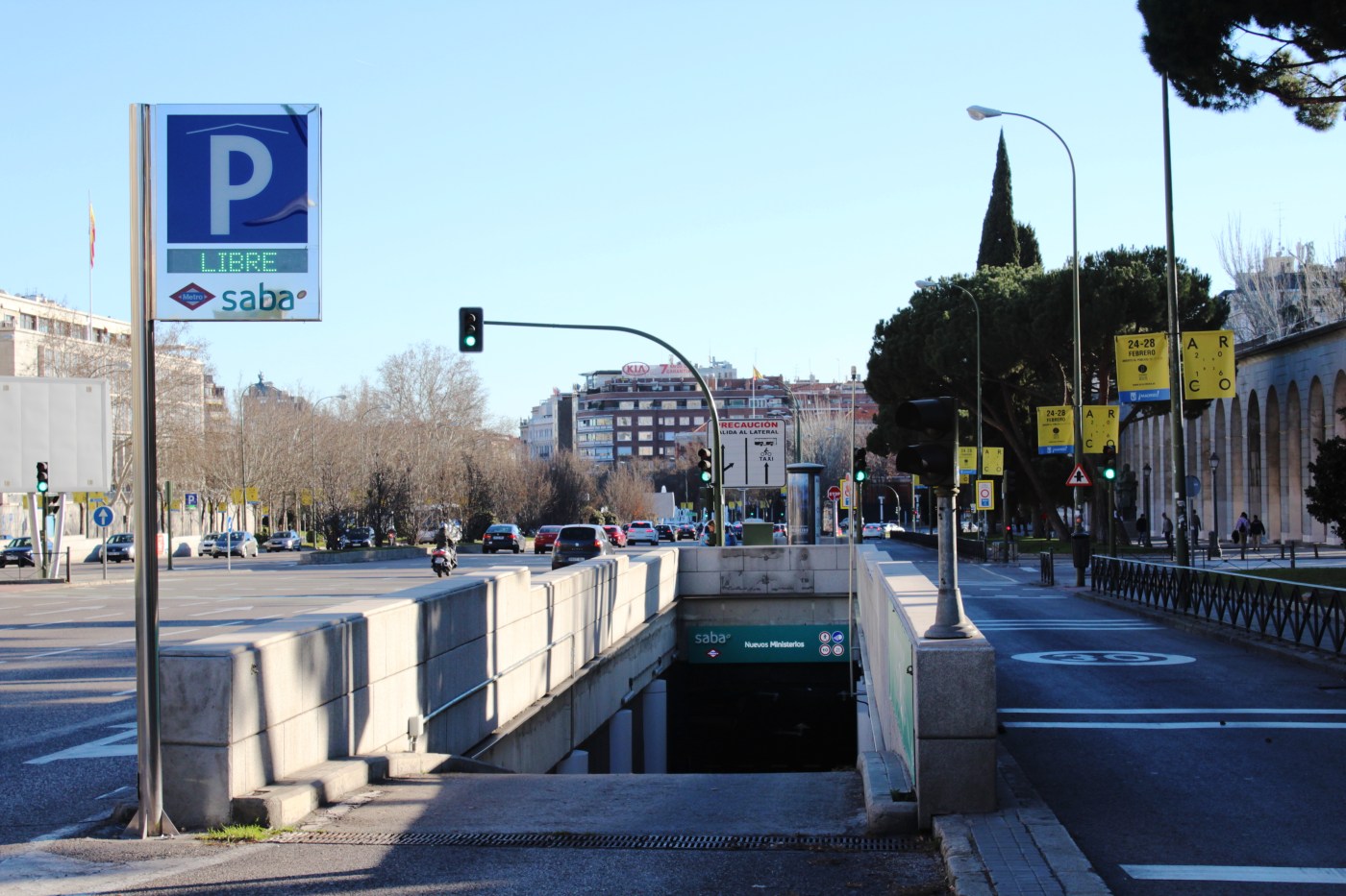 Entrada de acceso al aparcamiento de la estación de Nuevos Ministerios. Fotografía del autor.
