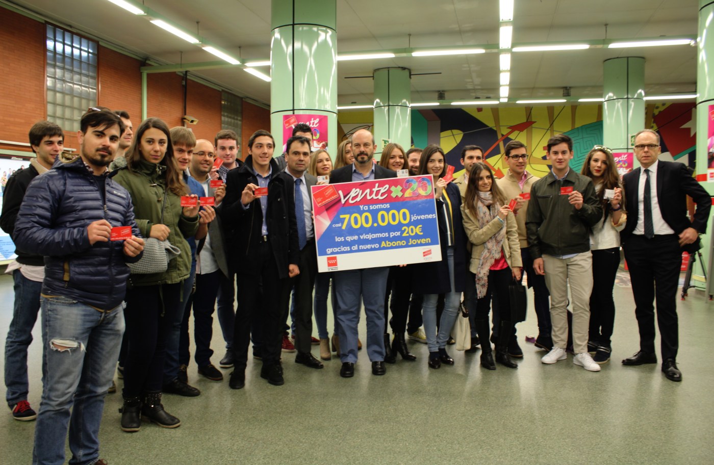 En la mañana de hoy, el Consejero de Transportes, Vivienda e Infraestructuras de la Comunidad de Madrid, Pedro Rollán; ha presentado, en la estación de Ciudad Universitaria, el aumento del número de jóvenes que disfrutan del nuevo Abono Joven con su tarifa plana hasta los 26 años. El consejero ha estado acompañado del consejero de Transportes, Juan Ignacio Merino de Mesa; el consejero delegado Metro de Madrid, Juan Bravo Rivera.