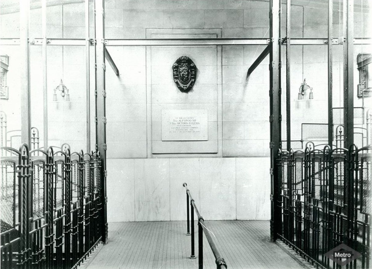 Placa conmemorativa de la inauguración del Metro de Madrid en la estación de Sol. Fotografía extraída de Memoria de Madrid. Signatura: metromadrid_0363