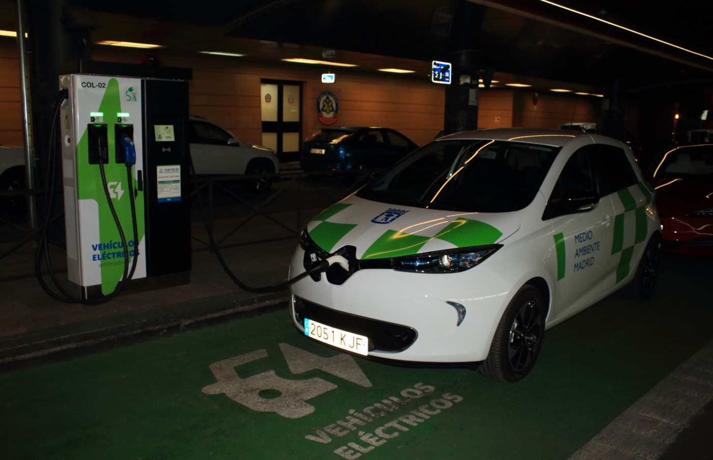 Imagen de un vehículo del Ayuntamiento de Madrid estacionado en un punto de carga de la capital. Fotografía del autor.
