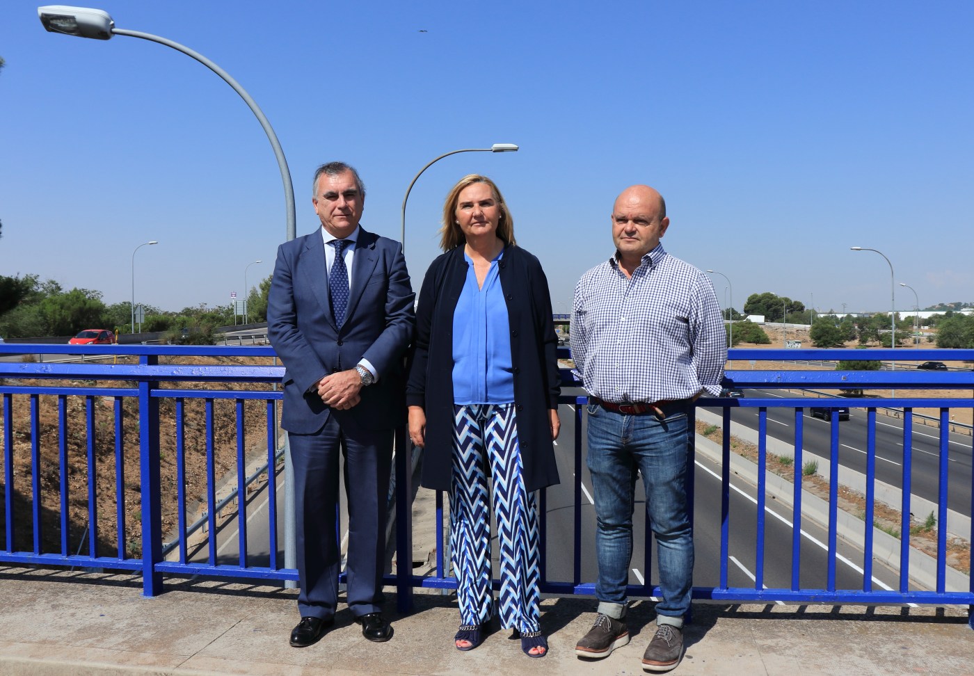 La Consejera en funciones de Transportes, Vivienda e Infraestructura, Rosalía Gonzalo; acompañada por el Director Gerente del Consorcio Regional de Transportes, Alfonso Sánchez Vicente; y el segundo teniente de alcalde de Torrejón de Ardoz, Valeriano Díaz; han asistido a un acto celebrado en la localidad de Torrejón de Ardoz para establecer la petición de desbloqueo del carril Bus-VAO del Corredor 2.