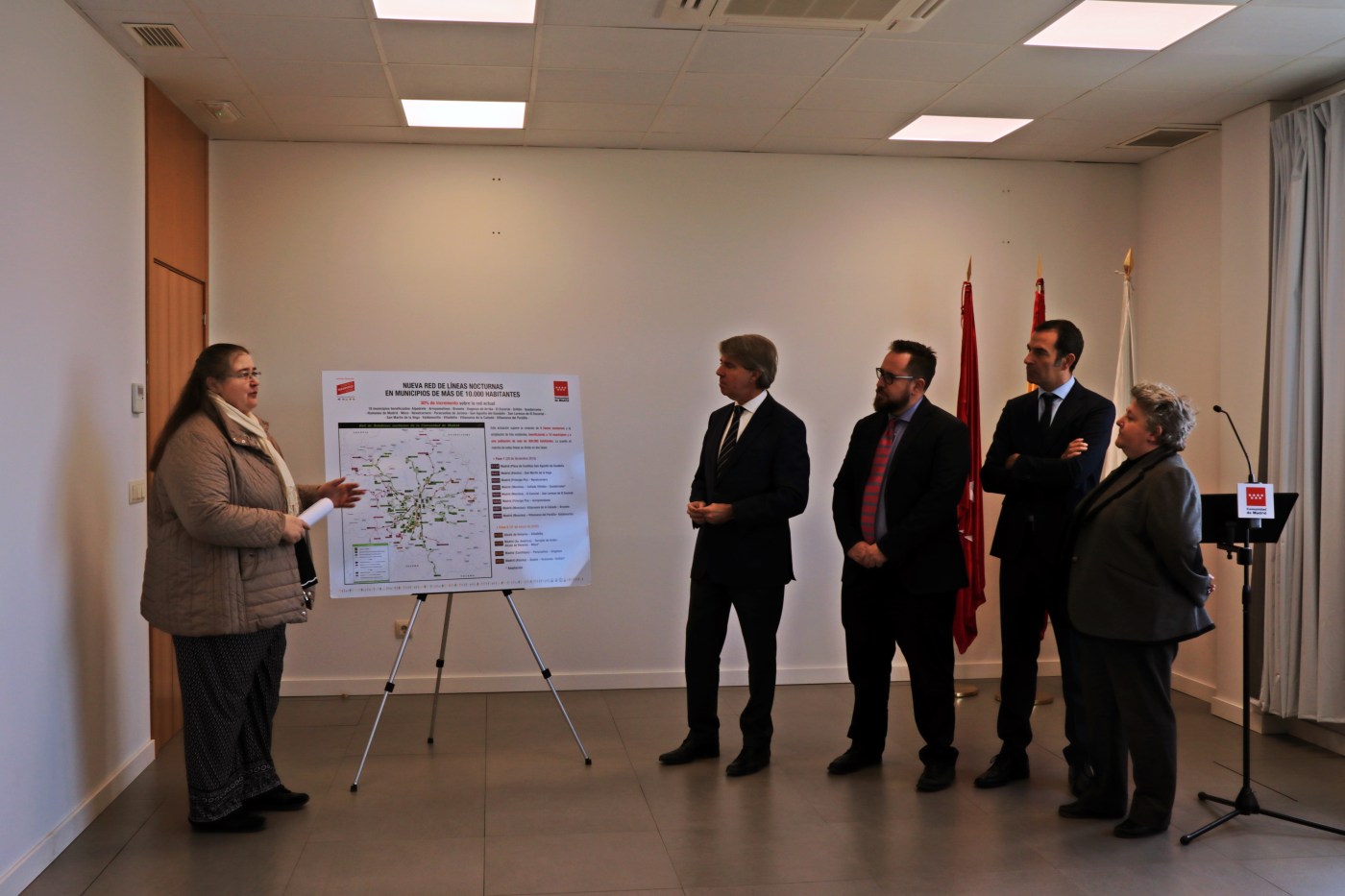 El pasado viernes, 20 de diciembre, la Comunidad de Madrid y el Consorcio Regional de Transportes presentaron en la población de Paracuellos del Jarama las nuevas líneas de autobuses interurbanos nocturnos que se incorporaban a las ya existentes. A este acto, acudieron el consejero de Transportes, Movilidad e Infraestructuras de la Comunidad de Madrid, Ángel Garrido; y otros representantes de los municipios que se ven afectados por esta mejora.
