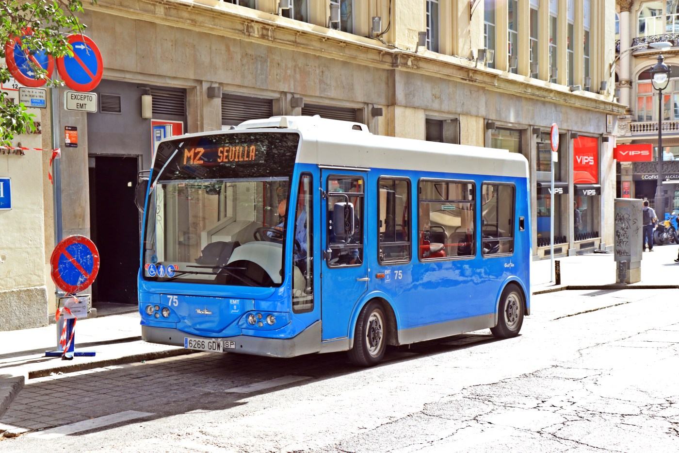 Imagen de uno de los microbuses de la línea M2 en la cabecera de Sevilla. Fotografía del autor.