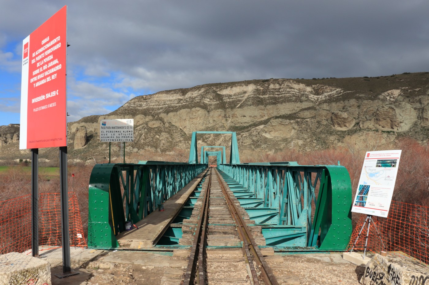 Para cruzar el río Jarama, en 1886, se construyó un puente metálico con el objetivo de que los trenes de viajeros y de mercancías pudiesen acceder a Madrid de forma sencilla. Tras el cierre del tráfico de mercancías en 1997, este puente ha quedado destinado para un uso compartido entre peatones, ciclistas y ferroviario. Un uso compartido, el cual dispone de problemas a la hora de mantener la seguridad. Este puente, propiedad de la Consejería de Transportes, Infraestructuras y Viviendas de la Comunidad de Madrid, se encuentra con graves problemas de seguridad. Ante ello, la Comunidad ha establecido una serie de reformas que permitan la circulación de peatones, ciclistas y servicio ferroviario en condiciones de seguridad.