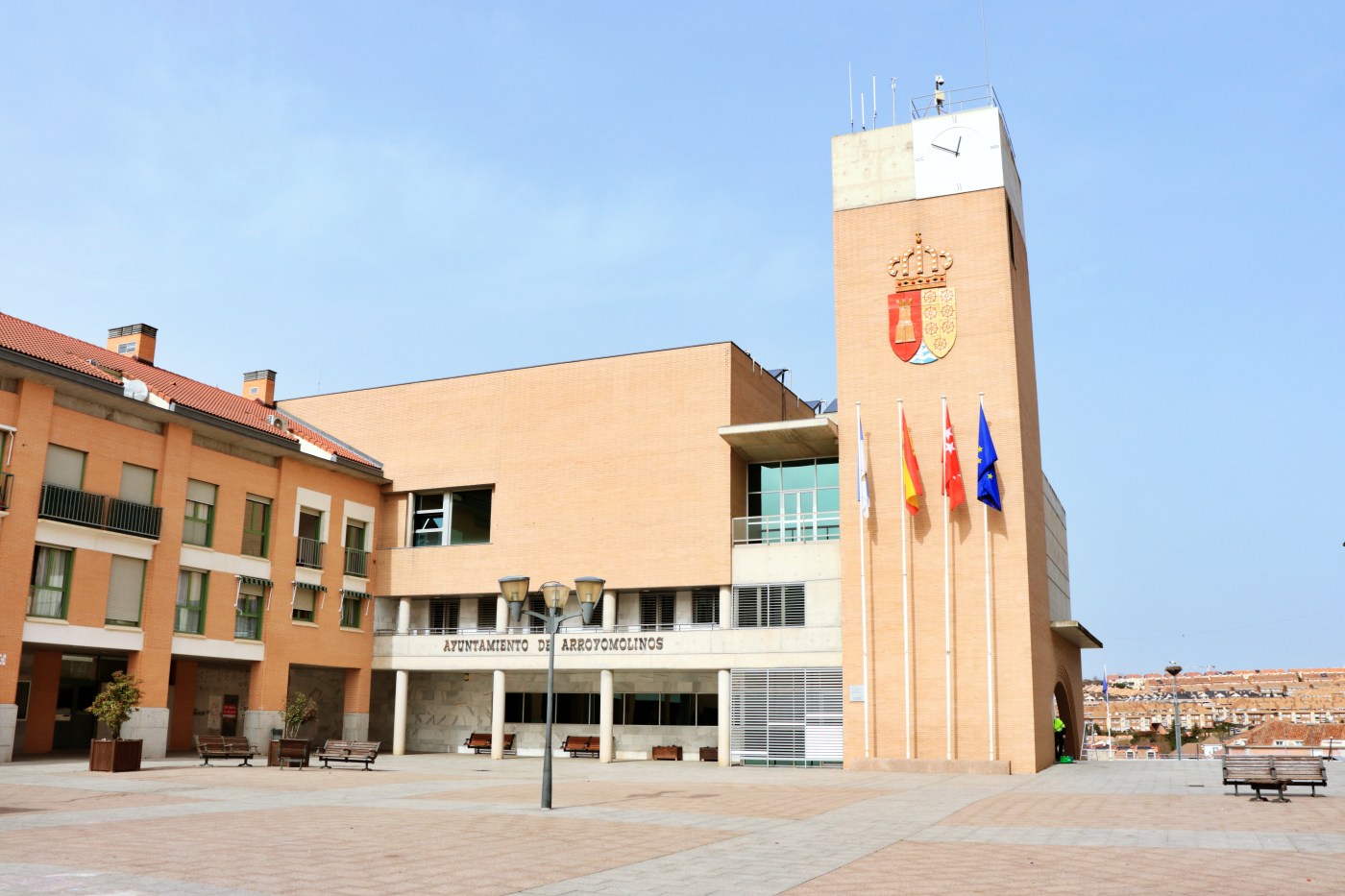 Imagen del Ayuntamiento de Arroyomolinos desde la plaza de España. Fotografía del autor.