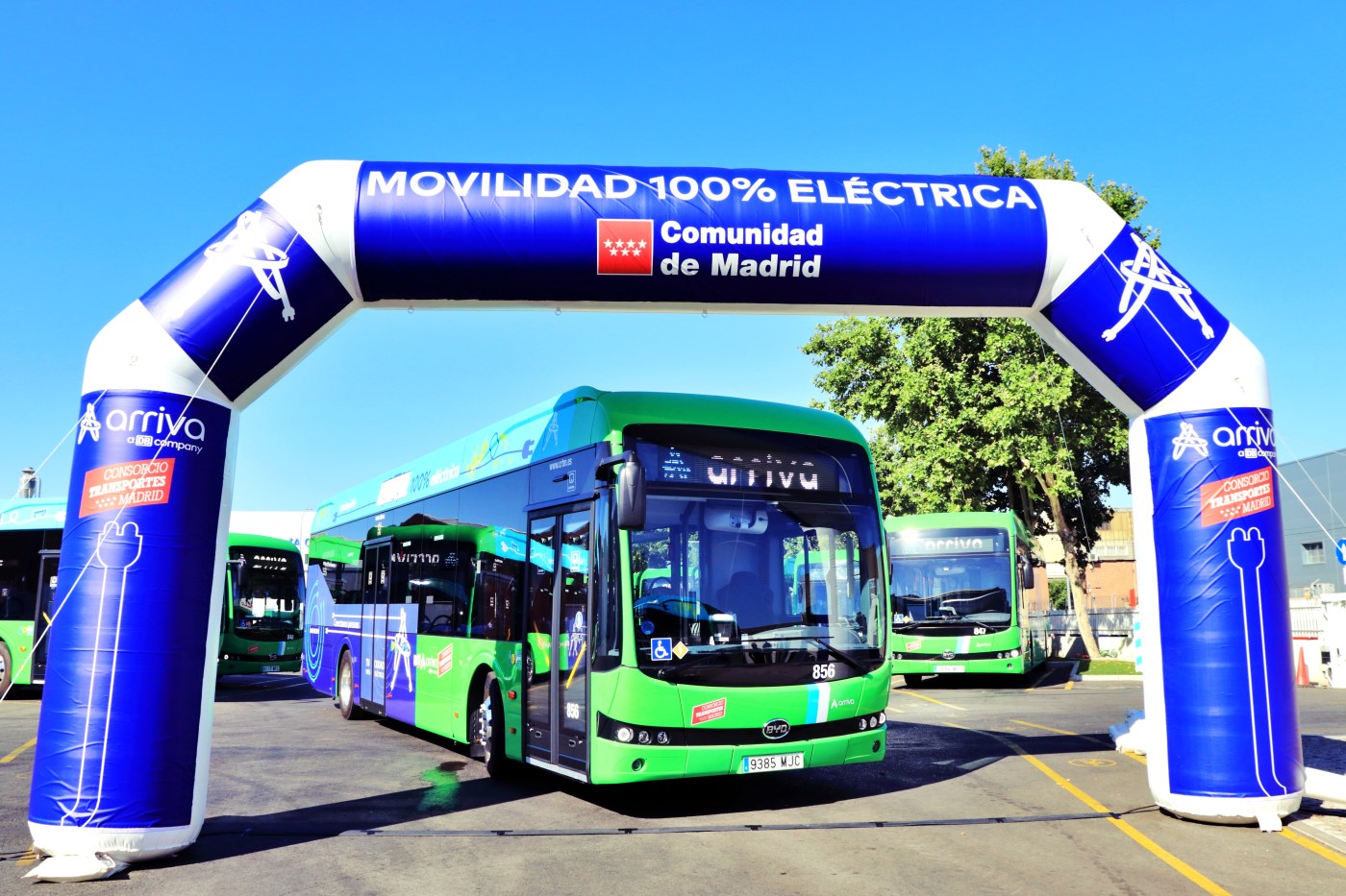 En la mañana de ayer, 14 de julio, la empresa Arriva Madrid presentó, en su base de Alcorcón, los nuevos autobuses eléctricos. Estos nuevos autobuses se sumarán a los ya existentes y estarán destinados al servicio urbano de Alcorcón y al servicio interurbano. Con ello, la empresa ha logrado un paso importante en nuestra Comunidad: que el servicio urbano de uno de los municipios con mayor número de habitantes de nuestra provincia sea el primero que disponga de una flota totalmente electrificada. A este acto, acudieron el consejero de Vivienda, Transportes e Infraestructuras, Jorge Rodrigo Domínguez; el gerente del Consorcio Regional de Transportes, Luis Miguel Martínez Palencia; el consejero delegado de Arriva en España, Antonio Cendrero; el director de Arriva Madrid, Francisco Javier Vilches; la alcaldesa de Alcorcón, Candelaria Testa, y otras autoridades invitadas.