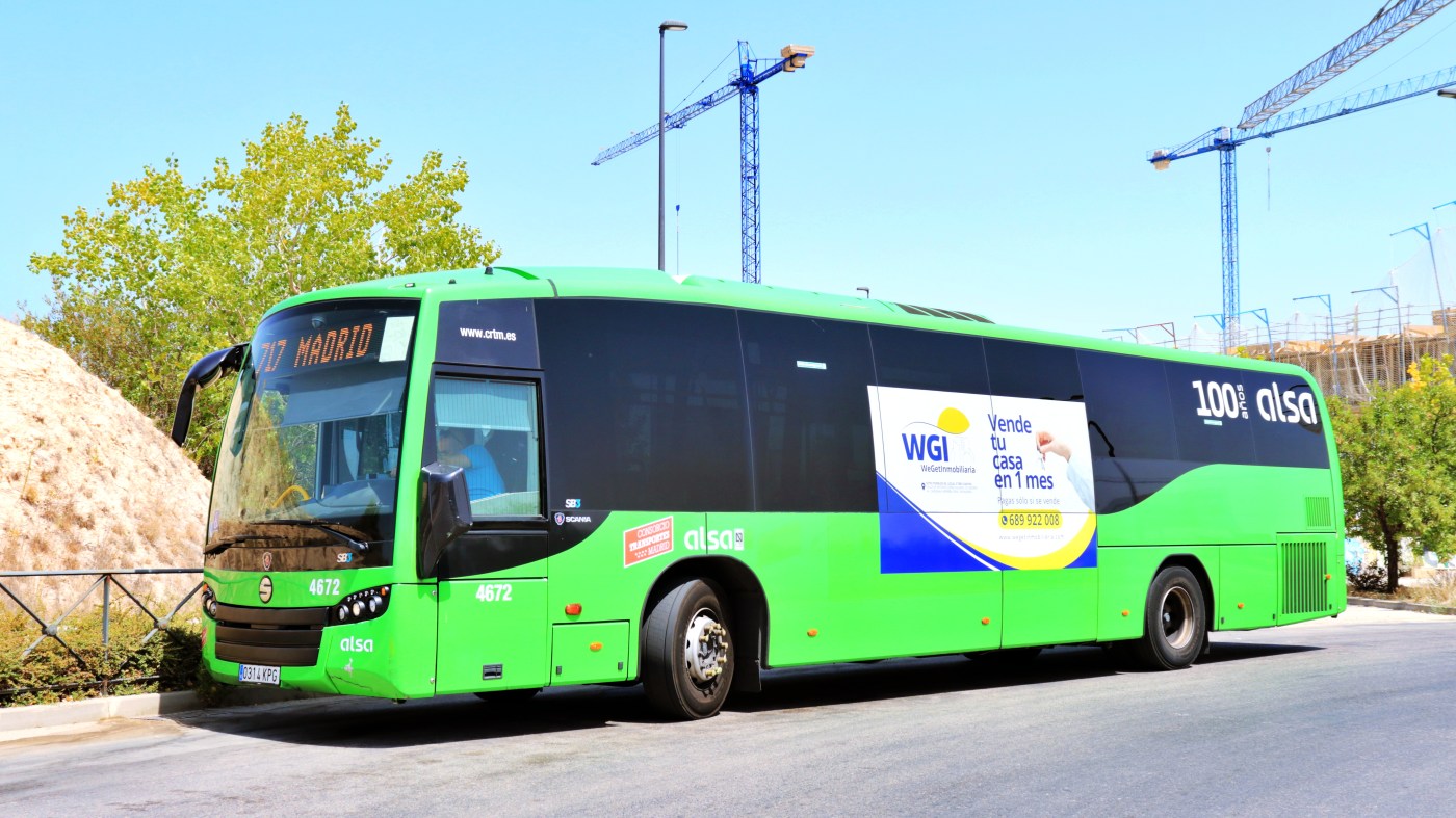 Imagen de un autobús en la línea 717 en Tres Cantos. Fotografía del autor.