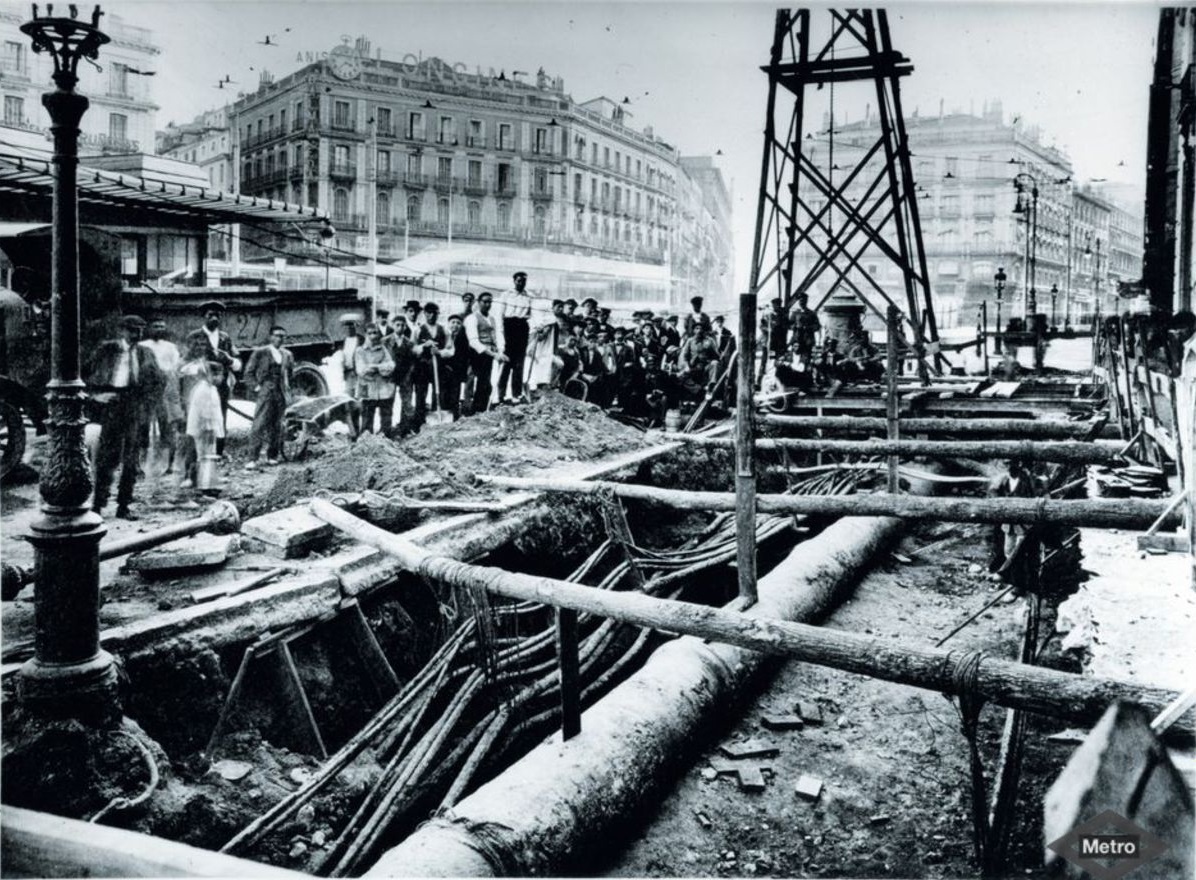 Imagen de las obras de construcción del Metropolitano Alfonso XIII (anterior a 1924). Fotografía de Memoria de Madrid.