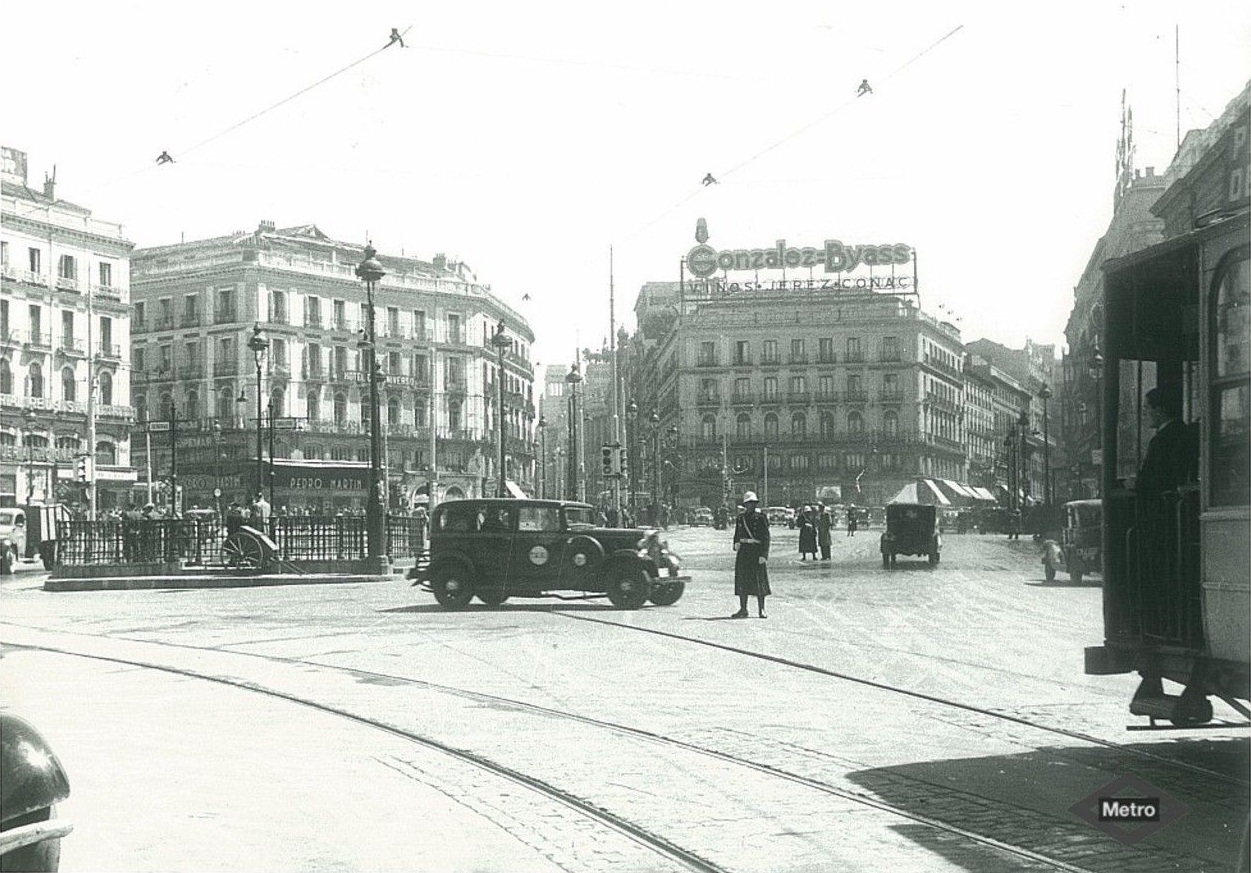 Imagen de la Puerta del Sol en la década de 1920. Fotografía extraída de Memoria de Madrid (metromadrid_2674)