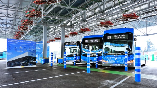 Imagen de varios autobuses eléctricos en la nueva estación de carga. Fotografía del autor. En la mañana de hoy, 18 de marzo, la EMT de Madrid ha presentado en el Centro de Operaciones de Carabanchel una nueva estación de carga eléctrica por pantógrafo, la cual viene a complementar a la estación de carga ya existente.... Leer más →